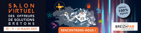 Afin d’accélérer l’intégration des technologies de l’Industrie du Futur dans les entreprises bretonnes : TPE-PME et grandes entreprises de toutes filières industrielles, Breizh Fab et l’ensemble des pôles de compétitivité bretons vous proposent un évènement inédit 100% digital, du 10 au 12 mars 2021 !