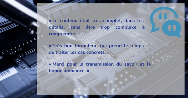 Cette formation offre une approche complète de la conception de circuits imprimés selon les normes IPC. Elle permet de comprendre les contraintes de fabrication, d’intégrer les bonnes pratiques DFM/DFA/DFT, et de concevoir des PCB fiables, testables et optimisés pour la production.