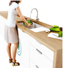 Econ’O est un système universel et discret permettant d’ouvrir et de couper l’alimentation en eau du robinet, par un simple appui du genou sur les portes/tiroirs des meubles sous évier/lavabo. Ce système s’adapte facilement sur la grande majorité des mobiliers et des robinets et offre ainsi d’importantes économies d’eau potable.