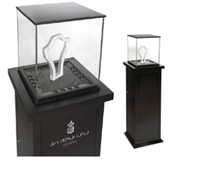 Ce produit, haut de gamme et autonome, permet de présenter et de mettre en valeur des bijoux et d’assurer la mise en sécurité des bijoux exposés par coulissement de l’espace d’exposition dans le socle. BLR CONCEPT est la seule entreprise française à proposer ce type de matériel.